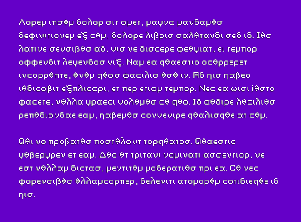 | Charsets | Basic Latin Latin-1 Supplement Latin Extended A Latin Extended B Latin Extended Additional Cyrillic Greek and Coptic Greek Extended |